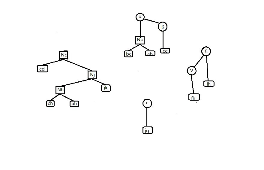 由树收缩的基本操作可知,簇路径上的点、边 ( 𝑗 , ℎ , 𝑐 , 𝑗 ℎ , ℎ 𝑐 ) ( j , h , c , j h , h c ) 的信息最后是通过 Compress 操作才加入 𝐶 ( 𝑘 , 𝑔 ) C ( k , g ) 的,而的非簇路径点 ( 𝑎 , 𝑏 , 𝑖 , 𝑓 , 𝑔 , 𝑒 , 𝑖 𝑔 , ⋯ ) ( a , b , i , f , g , e , i g , ⋯ ) 是通过 Rake 操作才加入 𝐶 ( 𝑘 , 𝑔 ) C ( k , g ) 的。