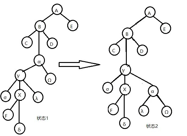 Rake Tree 里的点一定有一个中儿子。Rake Tree 可以做类似于 Splay 树的旋转操作(只需保证其中序遍历不变即可,旋转一个点时保持其中儿子不动)。