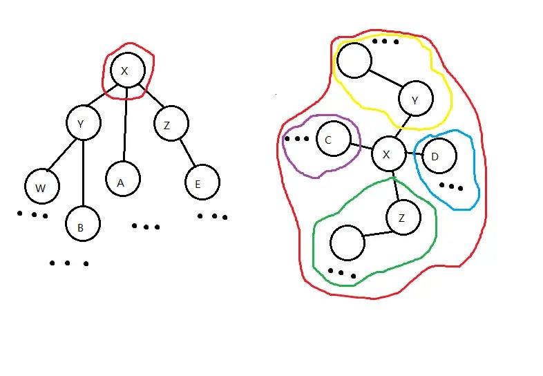 然而,如果我们选的点它在 Top Tree 中簇信息包含 𝑥 x 的节点个数很少,也就是说使它的信息尽可能晚地加入簇中,我们单次操作的时间复杂度就会有一个很大的提升。如图。